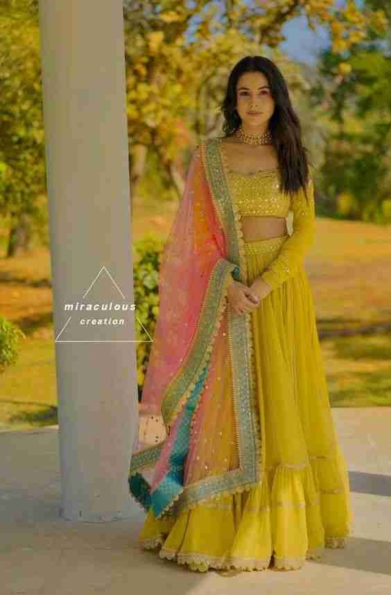 - Embroidered Haldi Lehengas: Richly detailed, these lehengas offer a vibrant and modern twist to traditional outfits.