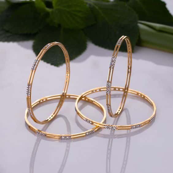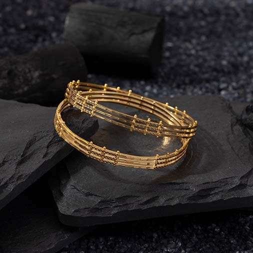 - Traditional Gold Bangles: Traditional gold bangles hold a special place in cultural celebrations and rituals. They feature classic designs inspired by heritage and are often passed down through generations. Intricate patterns, such as filigree work and meenakari art, adorn these bangles, showcasing the rich craftsmanship and cultural significance.