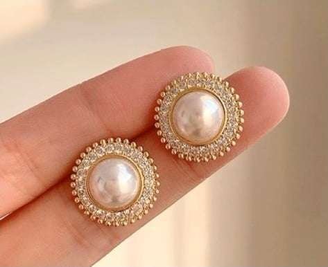 Little Gold Opal Studs: A beautiful and cute pair of little opal studs in tiny golden warring will look neat and sober on wearing.