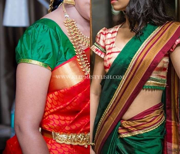 This is a well-known blouse model that is known to gel with a silk saree style. This is one of those blouses which don’t need anything else except for those short pleated sleeves to bring the magic to the saree.