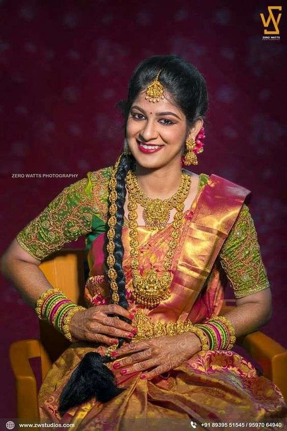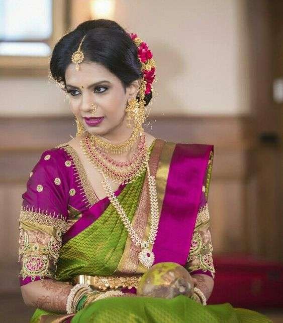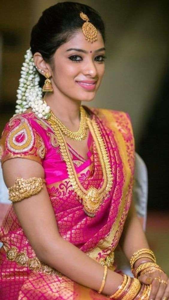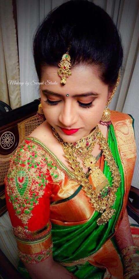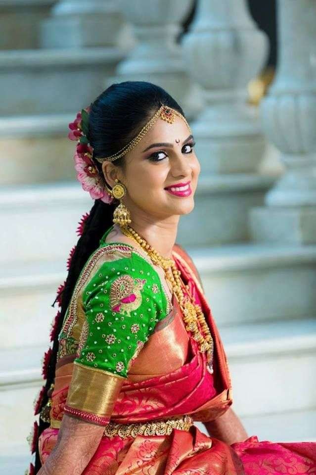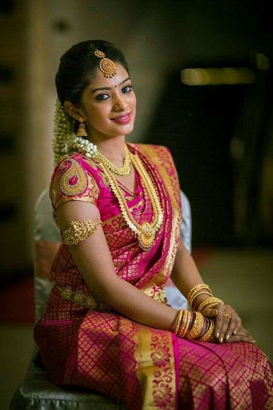 South Indian wedding sarees are usually a combination of red and yellow or a mix of shades that fall under either of them. … traditional silk saree blouse design.