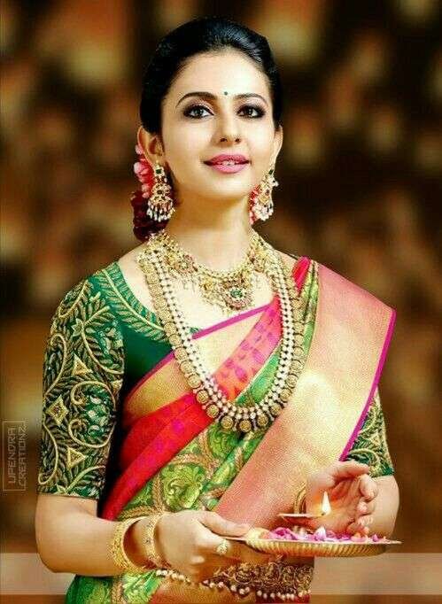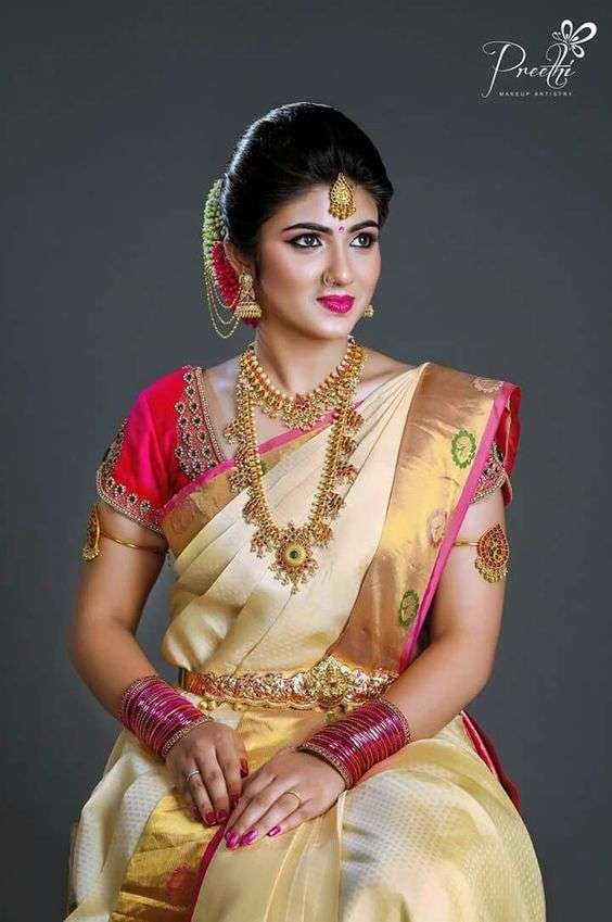 South Indian wedding sarees are usually a combination of red and yellow or a mix of shades that fall under either of them. … traditional silk saree blouse design.