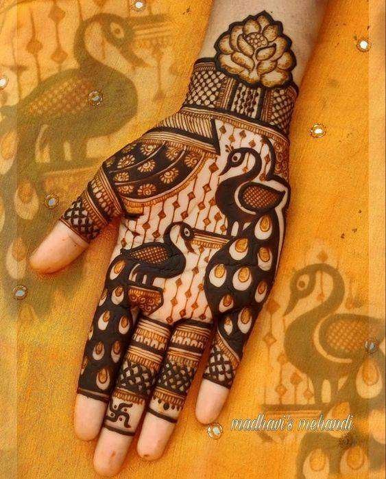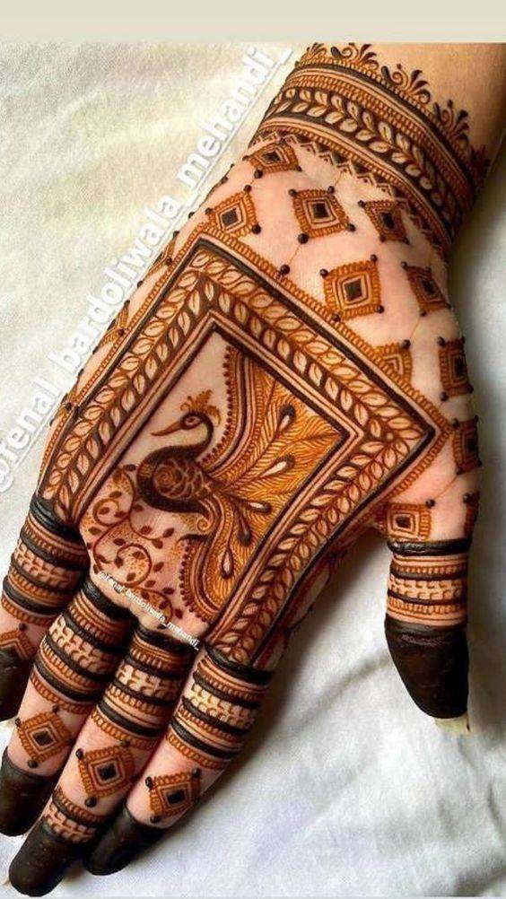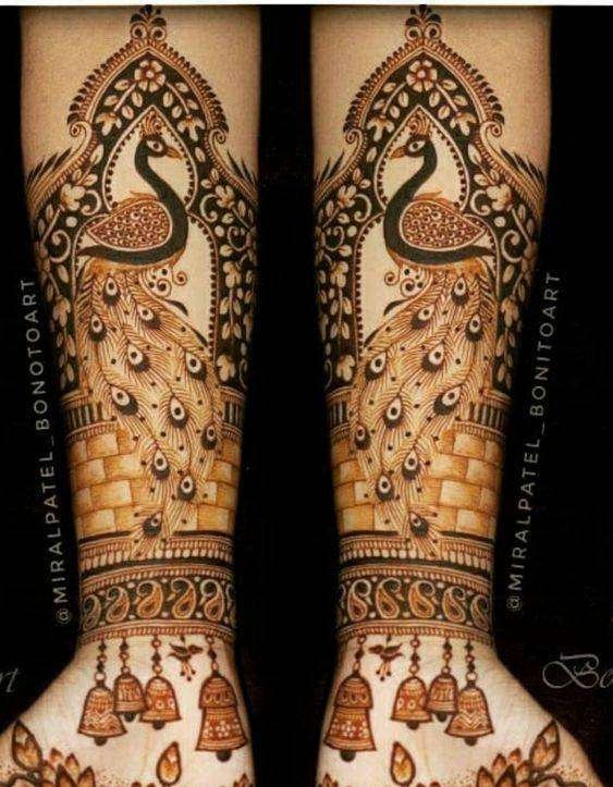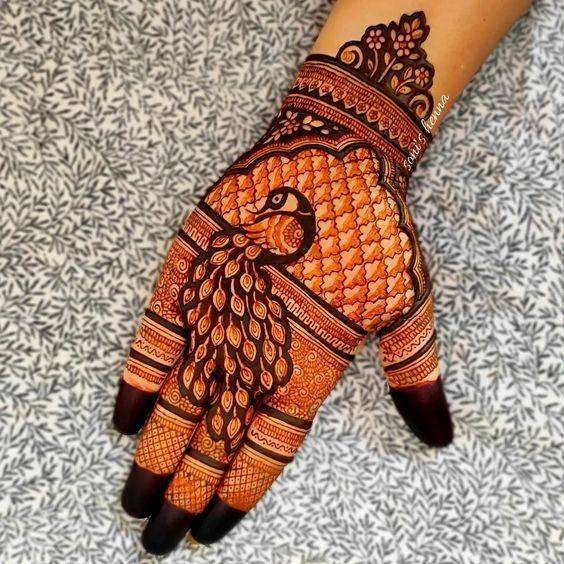 Mehendi Designs Unique Peacock Motif Mehndi Designs By Neethu Krishnaraj Published On: March 2, 2023 It is called the central peacock Mehendi design for a reason. The design has the peacock in the palm with motifs extending to the arms